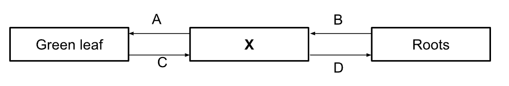 Arrows A, B, C, and D show the movement of substances in a plant. Which arrow shows the movement of food?