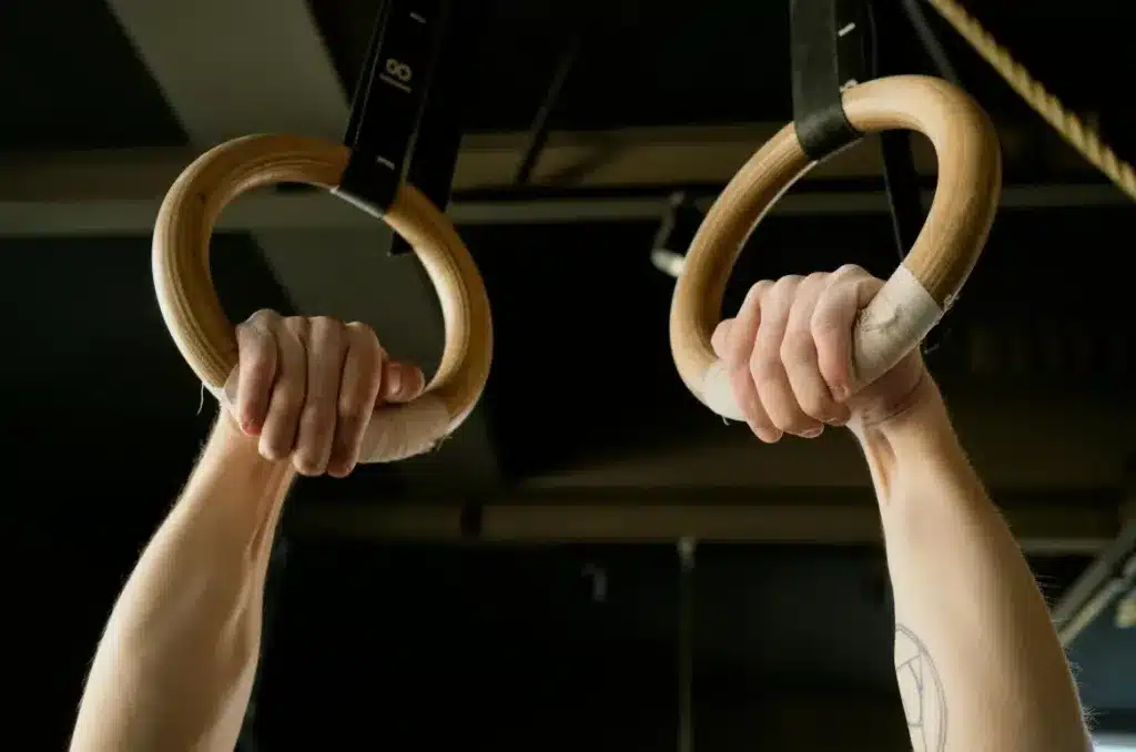 Sweat on the gymnast’s hands acts as a lubricant, reducing friction and potentially causing the gymnast’s hands to slip from the rings. Applying powder absorbs the sweat, thus reducing its lubricating effect. This is because the powder increases the friction between the gymnast’s hands and the gymnastic rings, enabling a firmer and more stable grip.